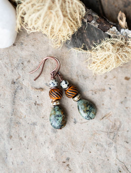 Agate Kambaba Jasper Green Earthy Gemstone Stretch Bracelet