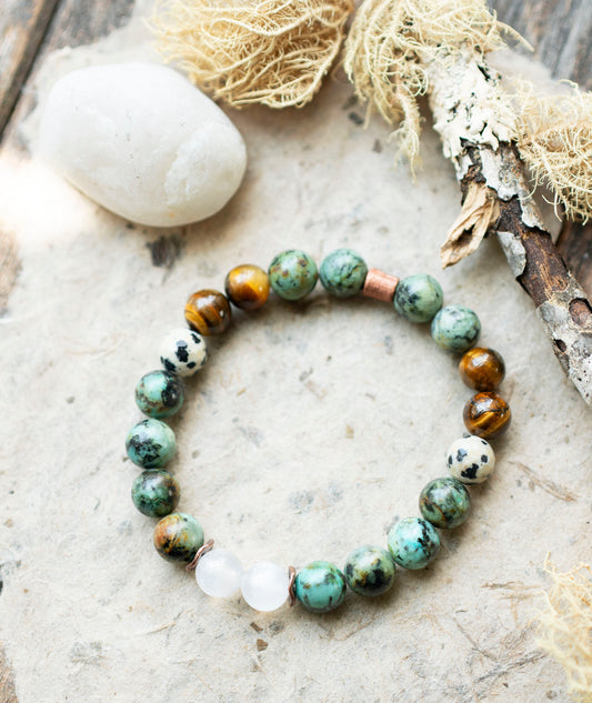 African Turquoise Vibrant Blue Green Gemstone Stretch Bracelet