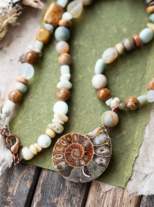 Ammonite Ocean Goddness Fossil Necklace