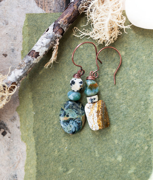 Asymmetrical Kambaba Jasper Gemstone Earrings