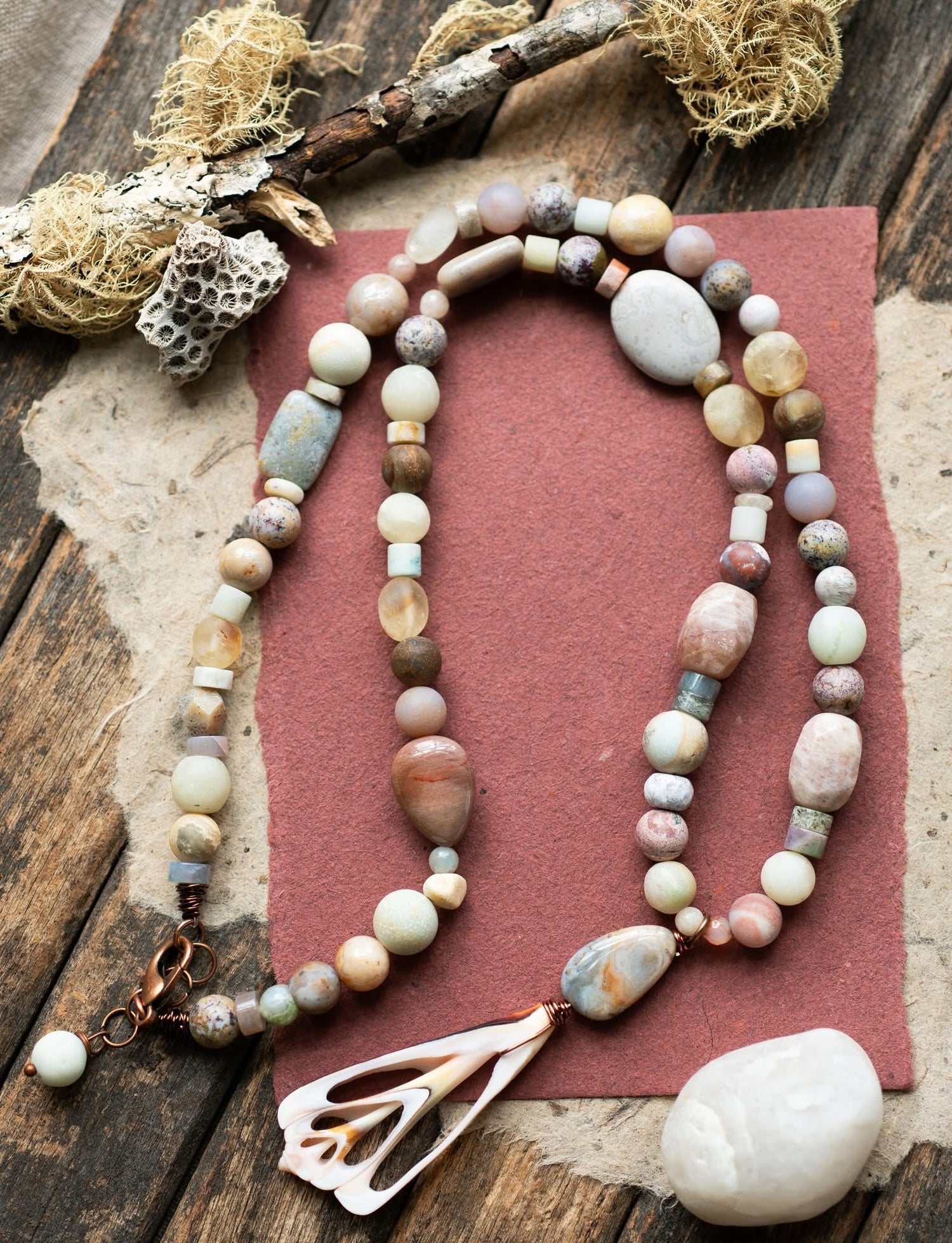 Seashell Beach Inspired Earthy Gemstone Beaded Bracelet