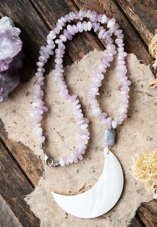 Amethyst Mother of Pearl Moon Goddess Necklace