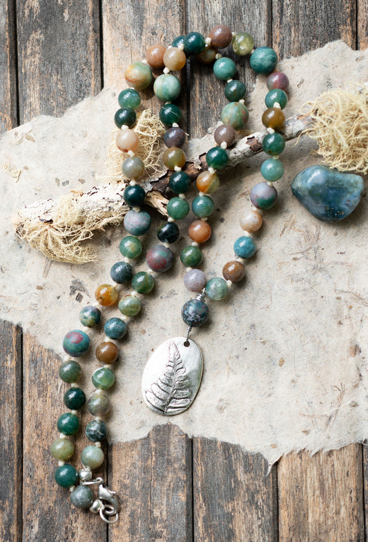 Ocean Jasper Rustic Fossil Beaded Gemstone Bracelet