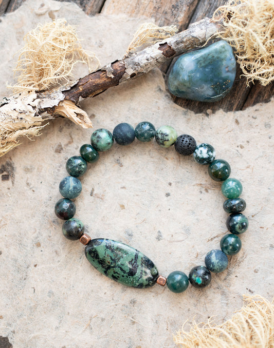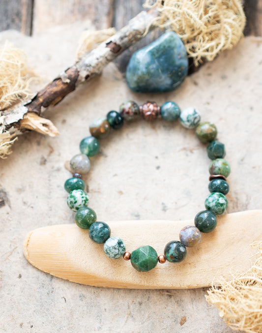 Moss Agate Green Nature Inspired Gemstone Beaded Bracelet